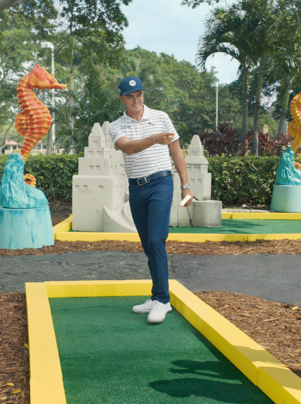 We had a packed eight-hour shoot day with Rickie Fowler for TV spots, :30 and :15, and social content, all complicated by strict COVID distancing and an outdoor pop-up set. When thunderstorms cut our time with Rickie in half, the team scrambled fast, problem-solved on the fly, and kept the production on track.